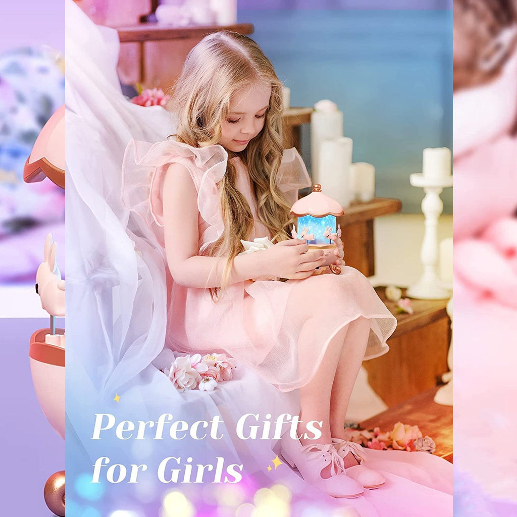 Bunny’s Carousel Rotating LED Night Light Projector with Music – Rechargeable Starry Sky Projection Lamp for Kids, Baby Room & Bedroom Decor