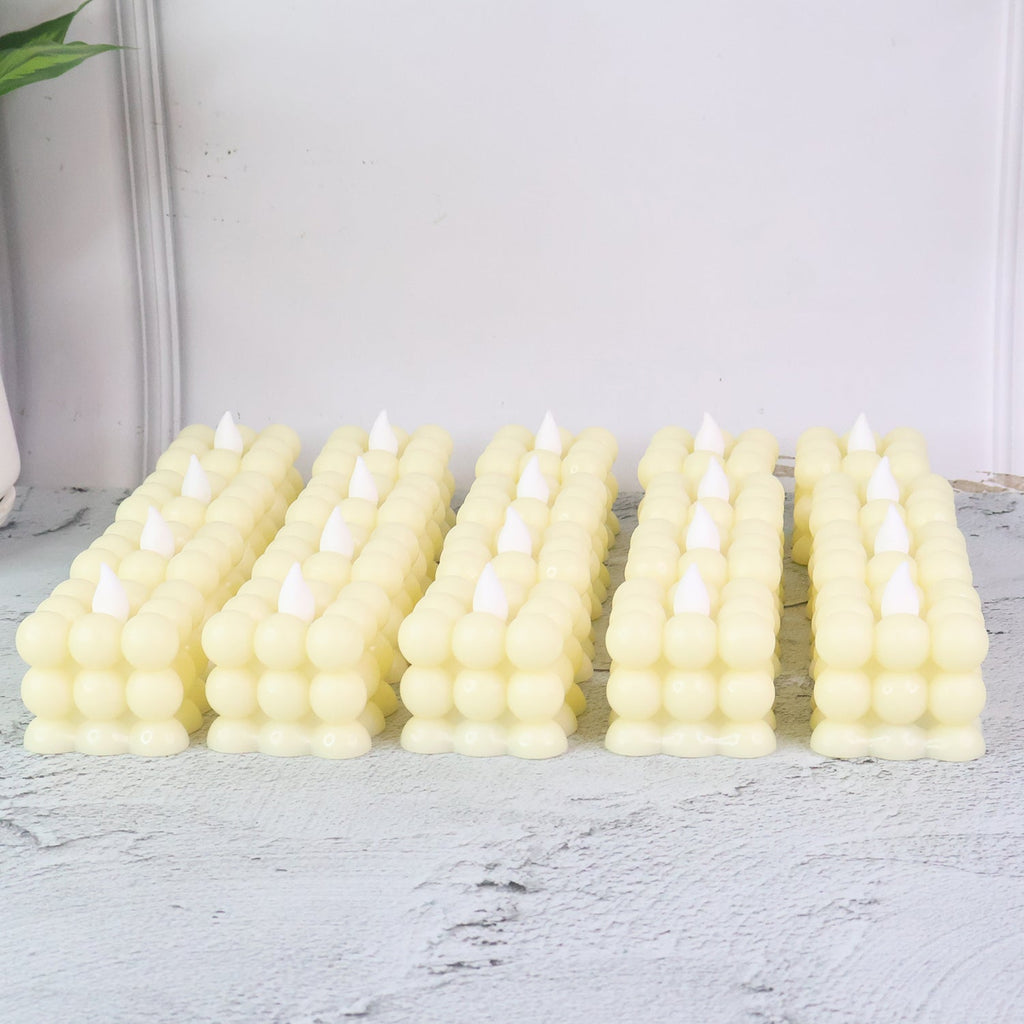 This set of 24 LED flameless cube candles adds elegance and warmth to your celebrations and everyday decor. With their unique cube-bubble design and soft LED glow, these candles provide a realistic flame-like effect without the hazards of fire, smoke, or dripping wax.